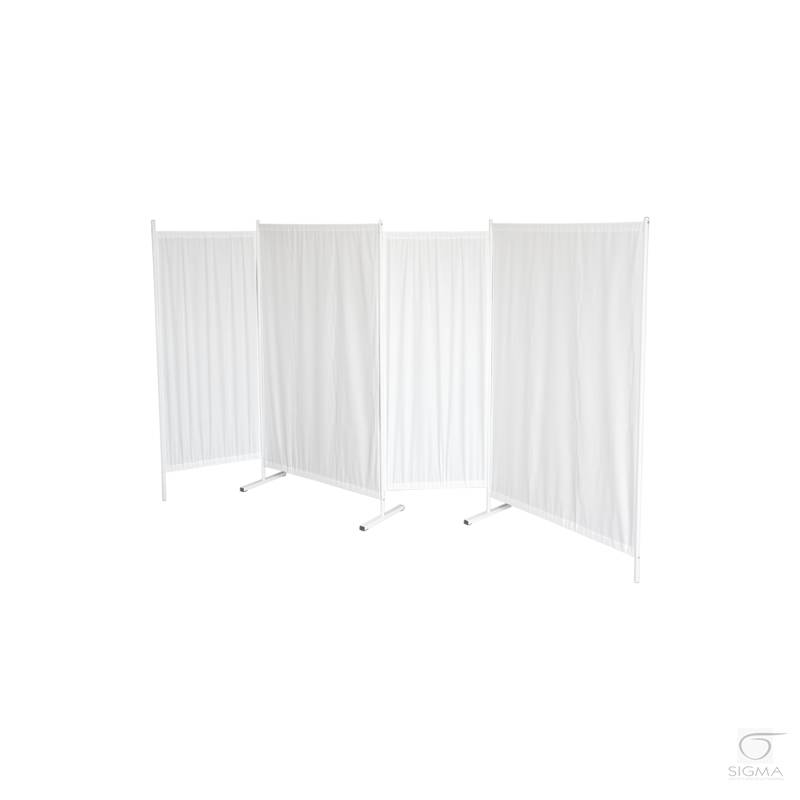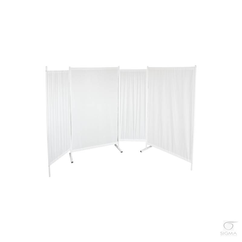parawanu w linii prostej. Zastosowana tkanina koloru białego. Parawan do salonów