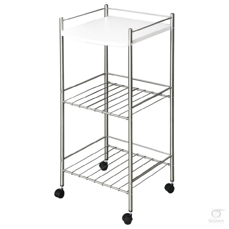 Stolik występuje w kolorze chromu i białym. Charakterystyka: - stolik ze stali nierdzewnej lub