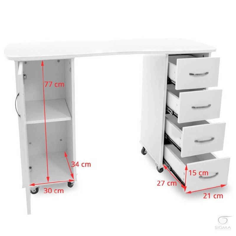 34 cm, szerokość: 30 cm - 4 szuflady: długość 27 cm, szerokość: 21 cm,