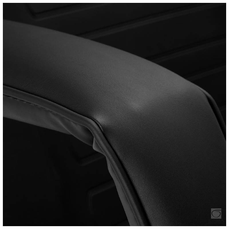 wypełniony jest pianką i pokryty imitacją skóry w odcieniach czerni. Dzięki