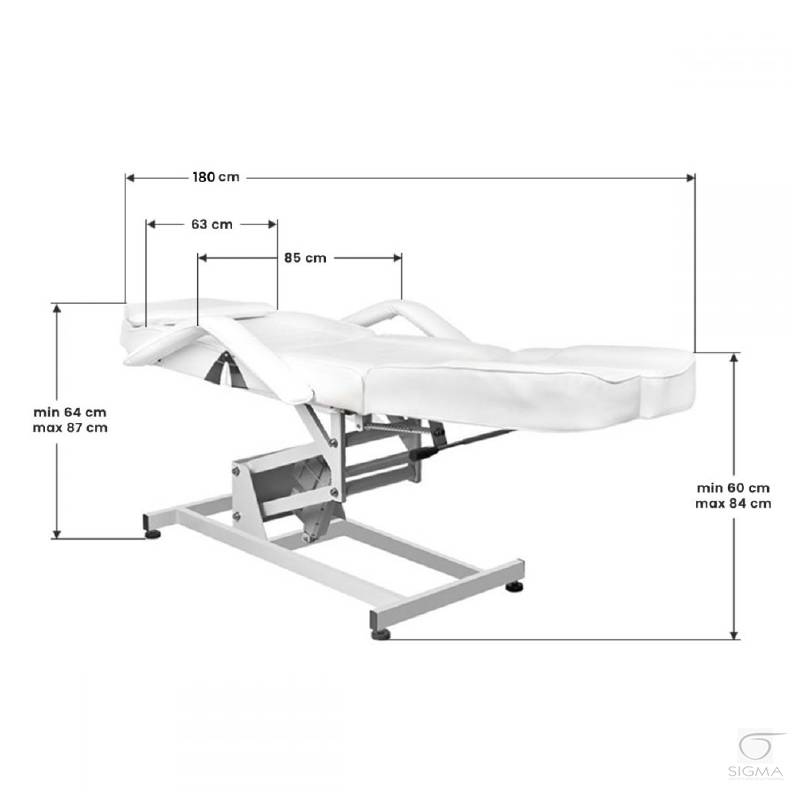 Fotel kosmetyczny z regulacją w płaszczyżnie góra-dół za pomocą pilota oraz nanualna regulacja nachylenia oparcia oraz podnóżków. Fotel wygodny, rozkładany do 180 stopni, może z powodzeniem służyć jako leżanka. W zagłówku zaślepiany otwór, który pozwala na zajęcie wygodnej pozycji w czasie zabiegów m.in. masażu. Siedziko pokryte wysokiej jakości i łatwą w pielęgnacji ekoskórą. Mozliwośc ściągnięcia podłokietników ułatwia klientowi zajęcie miejsca na siedzisku.