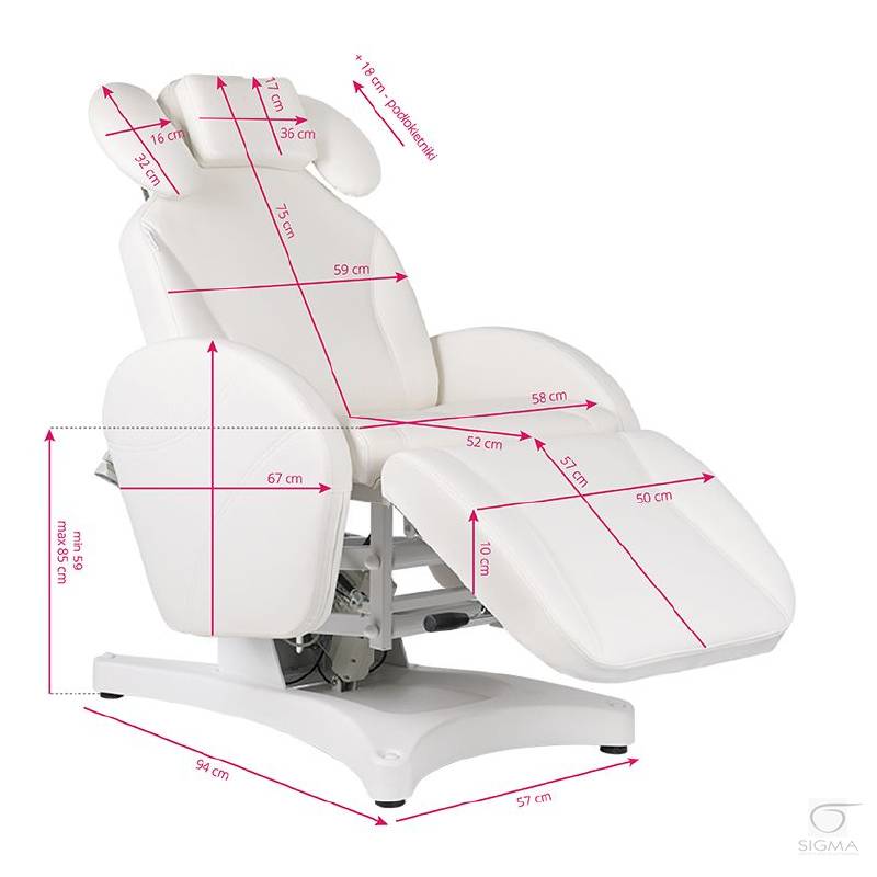 elektryczną regulację wysokości, ręczną regulację podnóżka i podłokietników oraz