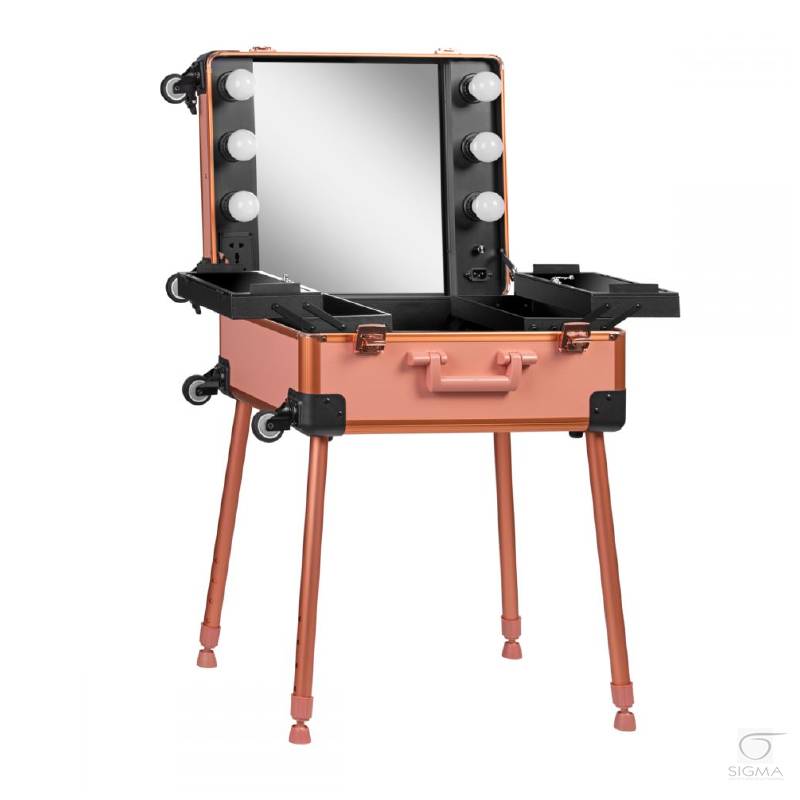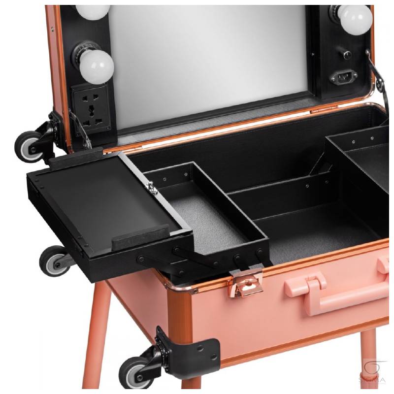 stanowiska. Po bokach lustra oświatlenie. Wewnatrz kuferka dodatkowo cztery