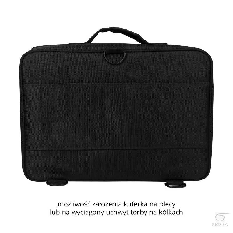 trwalego materiału. Wyposażony w uchwyt ułatwiający przenoszenie oraz pasek na