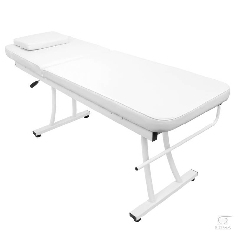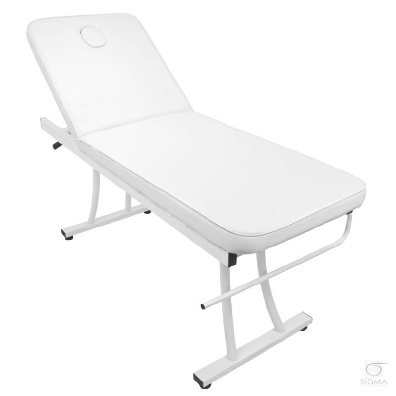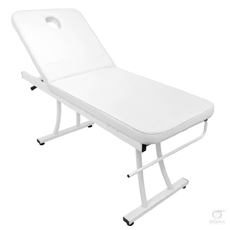 biała tapicerka PCV. Leżanka jest wyposażona w uchwyt na rolkę