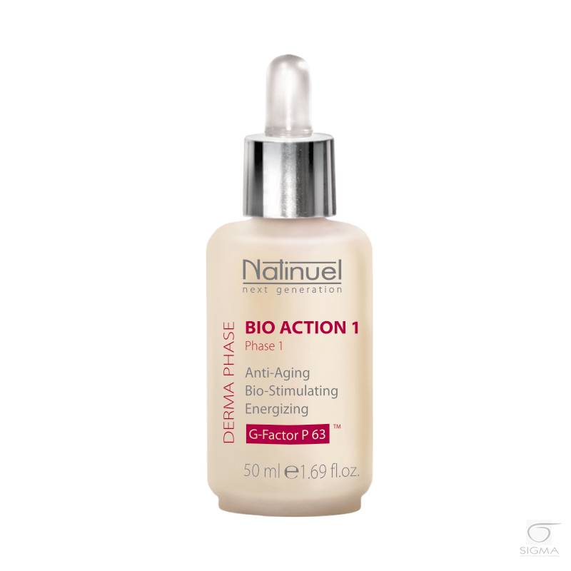 Substancje aktywne: G-FACTOR P 63-wyłączność Natinuel: aktywuje dyferencjację komórek macierzystych, wspomaga proces angiogenezy, zwiększa biosyntezę kolagenu, elastyny, proteoglikanów i GAGs, stymuluje mechanizmy autonaprawcze skóry, rekonstruuje barierę ochronną skóry, przeciwdziała glikacji białek, ułatwia usuwanie uszkodzonych białek skóry, aktywuje białaka antyoksydacyjne SOD, reguluje MMPs , blokuje działanie interleukiny-1. AHAs (Cyklosystem): aktywatory mechanizmów regulujących metabolizm energetyczny komórek na poziomie skóry właściwej i naskórka (działanie energetyzujące). Kwas jabłkowy: katalizator cyklu Krebsa, wspomaga produkcję energi biologicznej. Kwas liponowy: intensywny antyoksydant i wymiatacz rodników hydroksylowych. Chelat żelaza, miedzi i innych metali przejściowych. Zapobiega utlenianiu się kwasu askorbinowego i hamuje peroksydację lipidów katalizowanych przez miedź. Jest rozpuszczalny zarówno w roztworach wodnych jak i lipidach, co pozwala na dotarcie do różnorodnych warstw skórnych. Cytochrom C: mała homeoproteina występująca w wewnętrznej błonie mitochondriów, jest zasadniczym elementem łańcucha transportu elektronów. Zwiększenie działania Cytochromu C powoduje uwalnianie się energii a przez to poprawia się metabolizm komórkowy i działanie regeneracyjnie. Kwas migdałowy: regenerator komórkowy naskórka. Posiada działanie oczyszczające, nawilżające i ujędrniające. Wyrównuje koloryt karnacji, powoduje natychmiastowe rozświetlenie skóry. Witamina C : wzmacnia system odpornościowy i wspomaga mechanizmy obronne skóry, przyśpiesza wymianę komórkową, działa jako kofaktor w procesie syntezy kolagenu, jest istotnym antyoksydantem (ROS), zwalcza stany zapalne.