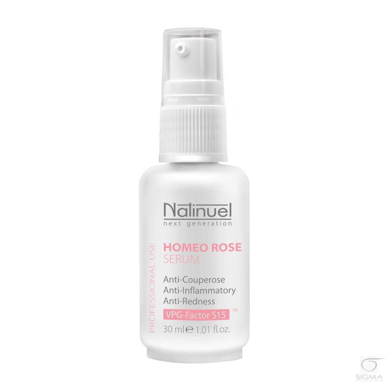Właściwości Homeo Rose Serum: Profesjonalne serum do pielęgnacji skóry z Couperose, obszarów twarzy intensywnie zaczerwienionych oraz skóry z trądzikiem różowatym. Formuła preparatu została opracowana tak, aby poszczególne składniki interreagując ze sobą oddziaływały na różne aspekty problemu i sprzyjały unormowaniu stanu skóry. Zawiera mix substancji aktywnych, które ułatwiają normalizację procesów zapalnych, redukują rozszerzanie naczyń krwionośnych i przepuszczalność mikronaczyniową, wzmacniają ściany naczyń włosowatych i zmniejszają wrażliwość skóry na zmiany temperatury.