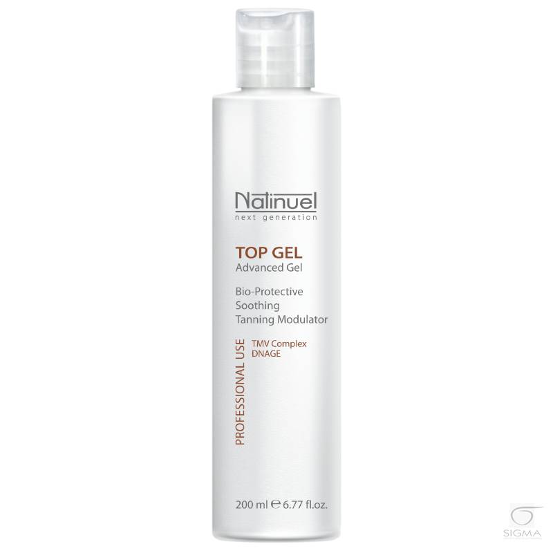 Właściwości Top Gel: Profesjonalny produkt przeznaczony do optymalizacji i podkreślenia zarówno opalenizny jak i naturalnego kolorytu karnacji, jednocześnie pozwalający na zachowanie i regulację homeostazy bariery skórnej. Jest to żel wielofunkcyjny wzmacniający system obrony skórnej i skutecznie chroniący struktury komórkowe, w szczególności DNA komórek przed szkodliwym działaniem promieniowania UV, oraz zwalcza wolne rodniki. Zapobiega fotostarzeniu, łagodzi podrażnienia i zapobiega suchości skórnej.
