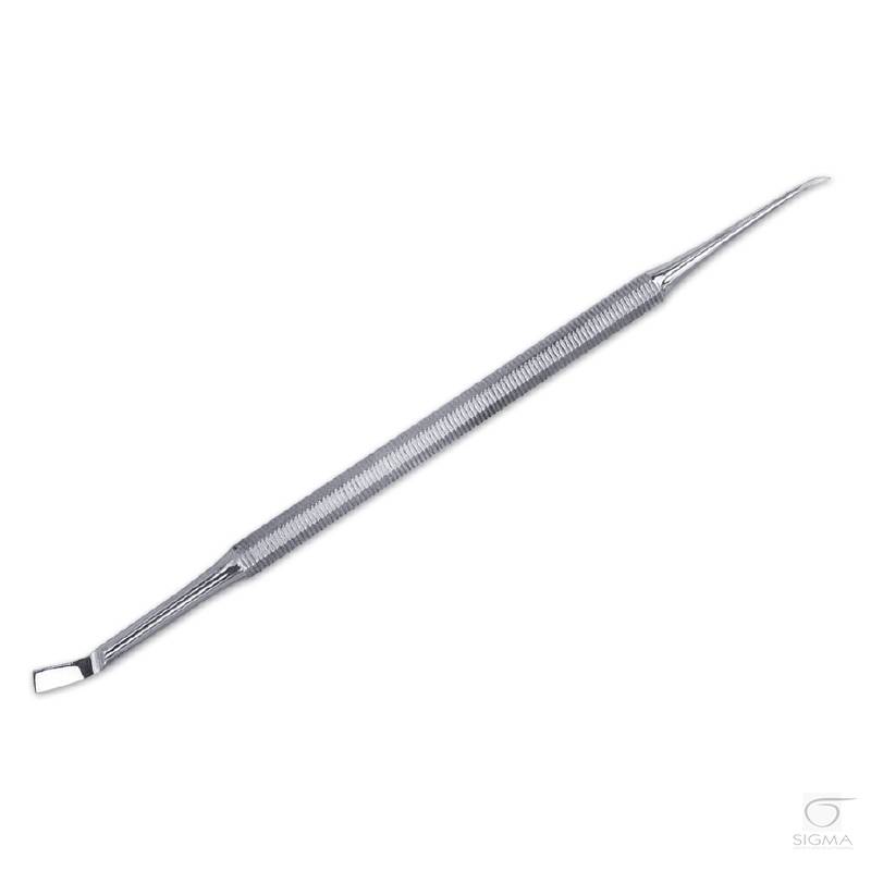 - w całości wykonany ze stali nierdzewnej- uchwyt długopisowy- dwustronny- polecany do pracy przy paznokciach i skórkach- długość 14,5 cm