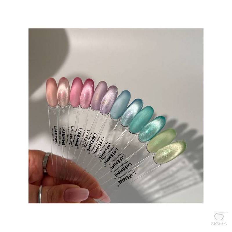 kolekcję i otrzymać jeden kolor gratis. - Non Stop Color™ jest łatwy w aplikacji, ponieważ samopoziomuje się i utwardza nie powodując uszkodzenia struktury paznokcia, w zaledwie 30-45 sekund w lampach LED i w czasie krótszym niż 2 minuty w lampach UV. Całe wykonanie manicure lub pedicure zajmuje mniej niż 30 minut. - Specjalna formuła tego Lakieru Hybrydowego doskonale wiąże się z powierzchnią płytki i wyrównuje strukturę, wzmacniając i chroniąc naturalne paznokcie. Utwardzanie w lampie nadaje wytrzymałość i bardzo silną odporność na zarysowania i odpryski nawet przez 3 tygodnie. - Lakiery Hybrydowe Non Stop Color™ można łatwo usunąć w ciągu 5-10 minut, w zależności od wybranego rodzaju zmywacza. Oba zmywacze lakierów hybrydowych od La Femme są wzbogacone lanoliną lub kaprylem, aby zapobiec nadmiernemu wsuszaniu skóry i naturalnych paznokci. - Formuła Non Stop Color™ została zaprojektowana tak, by można było ją stosować także na paznokciach przedłużonych metodą Żelową, Fiberglass i Akrylową, systemem manicure tytanowego La Femme® Easy Design a także Akrylożelem Spheric™. - Każdy Lakier Hybrydowy Non Stop Color™ jest wyposażony w specjalną nakrętkę, która zawiera kroplę rzeczywistego koloru, która pozwala łatwo zidentyfikować i bezbłędnie wybrać żądany kolor. UWAGA: |