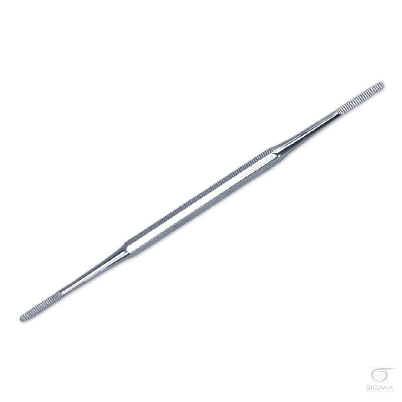 - w całości wykonany ze stali nierdzewnej- uchwyt długopisowy- dwustronny- prosta i profilowana końcówka pracująca- szczególnie polecany do pracy przy wrastających paznokciach- długość 14 cm- długość powierzchni trącej 15 mm