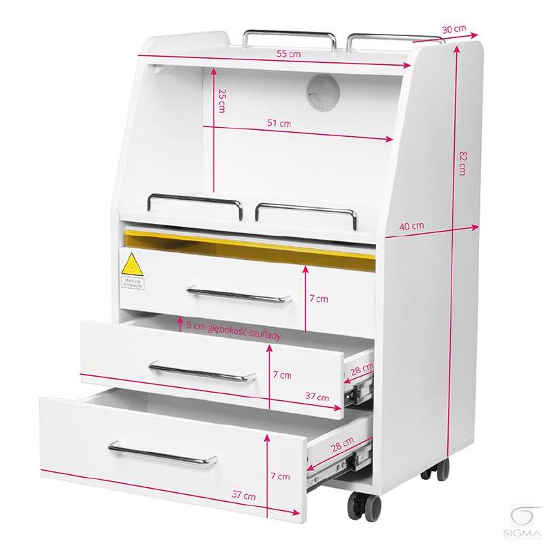wysuwaną półkę na frezarkę podologiczną lub inne urządzenie. Jedna szuflada