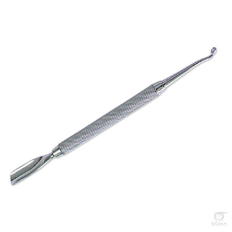 - w całości wykonany ze stali nierdzewnej- uchwyt długopisowy- dwustronny- polecany do pracy przy paznokciach i skórkach- długość 14 cm