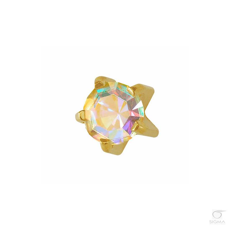 Opis produktu:Studex Plus oczko szkło barwione.- kolor: kryształ górski- oprawa: Tiffany (w pazurkach)- średnica główki kolczyka; rozmiar średni: 4 mm- długość igły kolczyka: 9,7 mm- kolor kolczyka: złoty