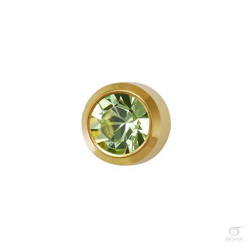 Opis produktu:Studex Plus oczko szkło barwione.- kolor: peridot- oprawa pełna: (zegarkowa)- średnica główki kolczyka; rozmiar średni: 4 mm- długość igły kolczyka: 9,7 mm- kolor kolczyka: złoty
