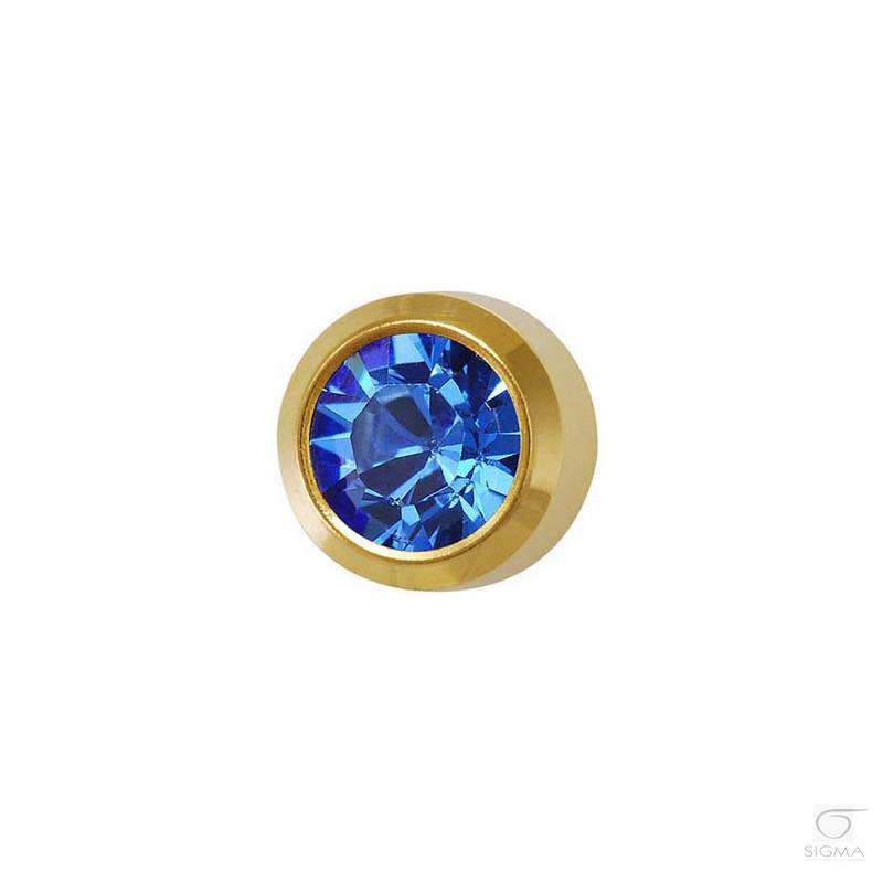 Opis produktu:Studex Plus oczko szkło barwione.- kolor: szafir- oprawa pełna: (zegarkowa)- średnica główki kolczyka; rozmiar mini: 3 mm- długość igły kolczyka: 9,7 mm- kolor kolczyka: złoty