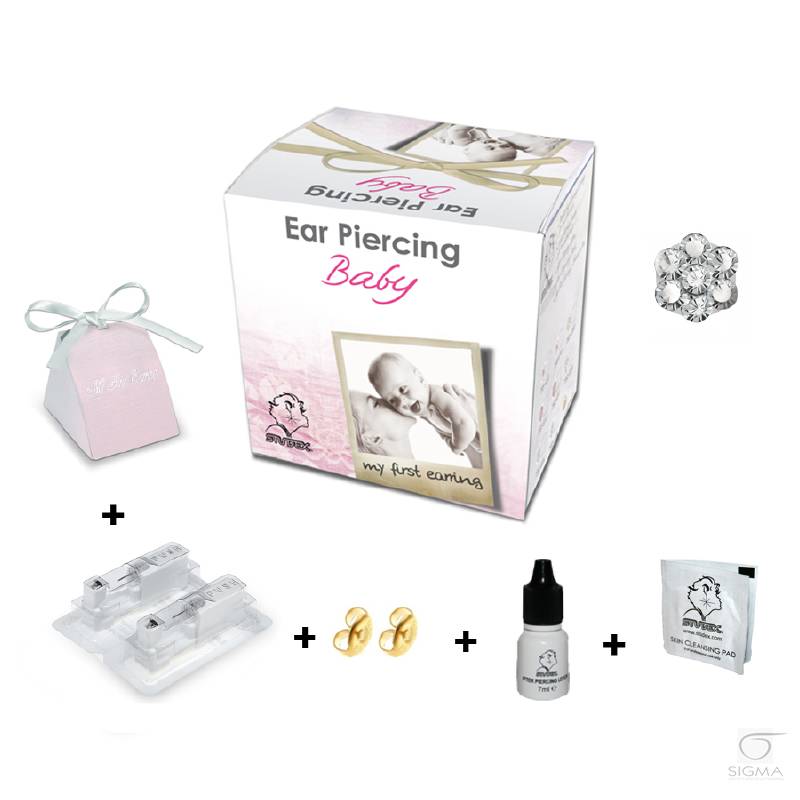 jednorazowym, sterylnym wkładzie. Ta nowe połączenie kolczyka, zapinki i wkładu