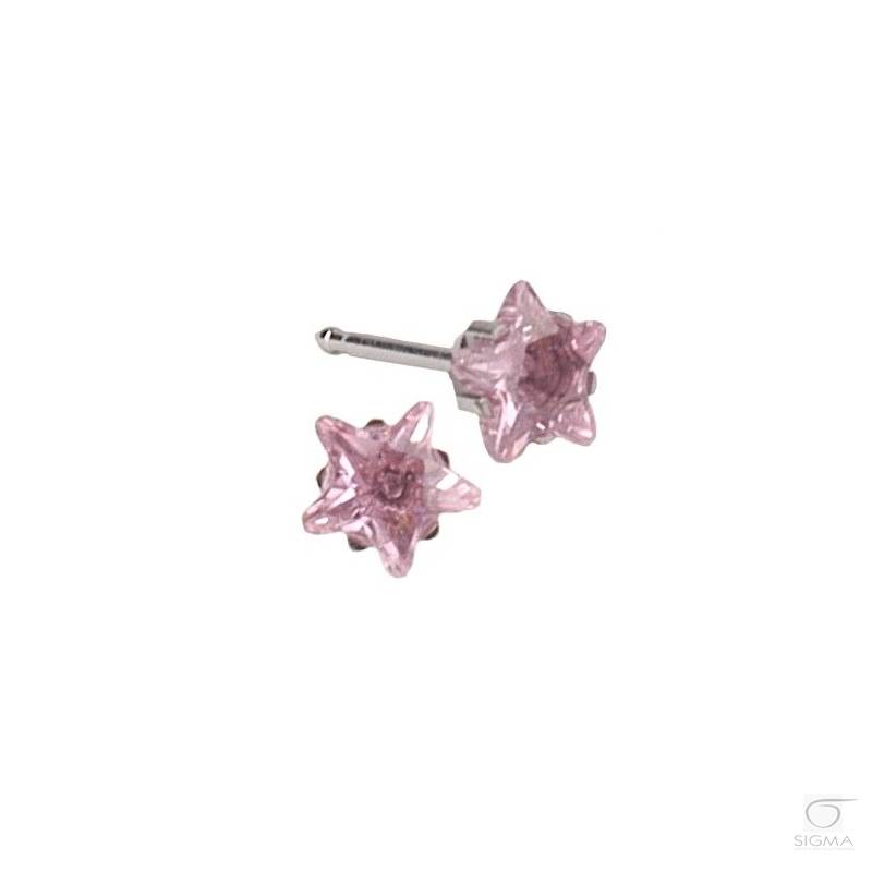 Opis produktu:System 75 różowa Cubic Zirconia; szlif gwiaździsty, syntetyczny kamień jubilerski.- średnica główki kolczyka; rozmiar maxi: 5 mm- długość igły kolczyka: 10,2 mm- kolor kolczyka: srebrny
