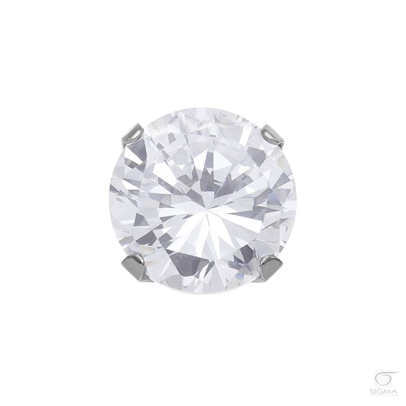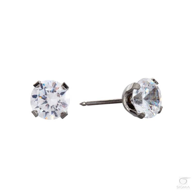 Opis produktu:System 75 Cubic Zirconia 6 mm, srebrna- syntetyczny kamień jubilerski; szlif brylantowy- oprawa: Tiffany (w pazurkach)- średnica główki kolczyka: 6 mm- długość igły kolczyka: 9,7 mm- kolor kolczyka: srebrny