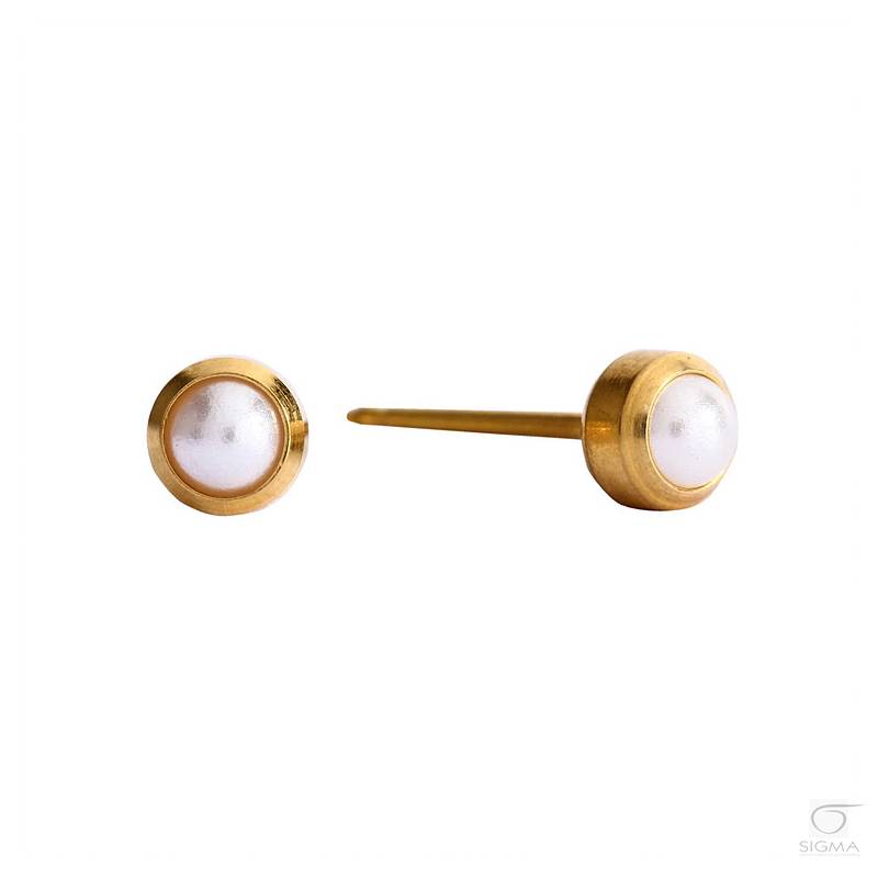 Opis produktu:System 75 oczko, szkło barwione.- kolor: perła biała- oprawa pełna (zegarkowa)- średnica główki kolczyka; rozmiar średni: 4 mm- długość igły kolczyka: 9,7 mm- kolor kolczyka: złoty