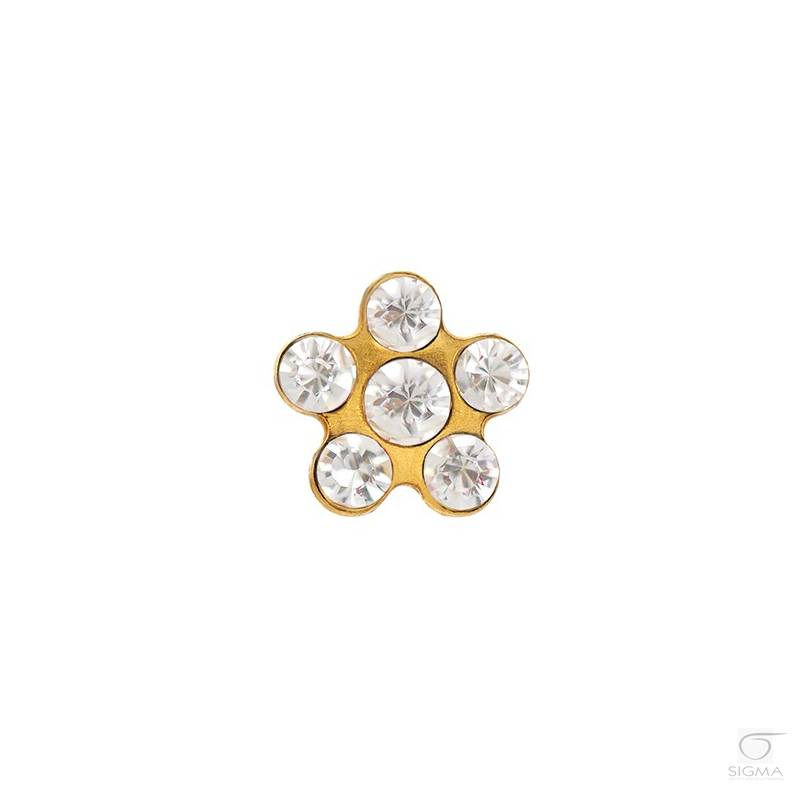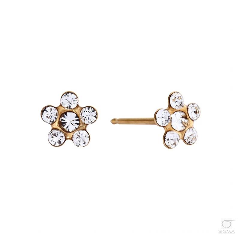 Opis produktu:System 75 stokrotka złota 6 kryształów- kamienie syntetyczne- złoto 14 karatów (próba 585)- średnica główki kolczyka: 5 mm- długość igły kolczyka: 9,7 mm- kolor kolczyka: złoty- zapięcie pozłacane (istnieje możliwość dokupienia zapięć wykonanych ze złota)