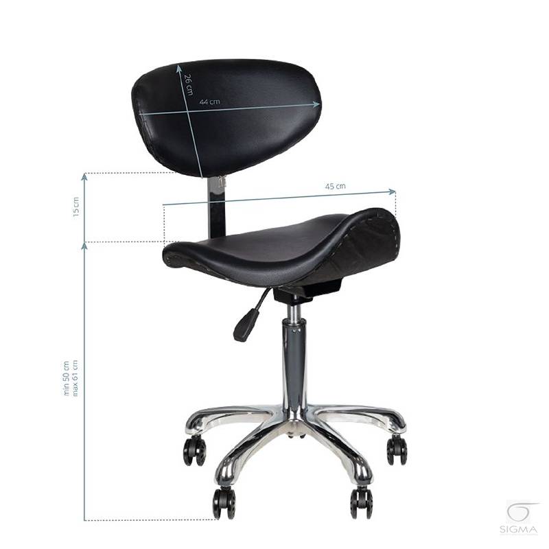 Opis produktu:Wygodny, ekskluzywny , stabilny taboret kosmetyczny z oparciem oraz profilowanym siedziskiem, na pięcioramiennej bardzo stabilnej podstawie.