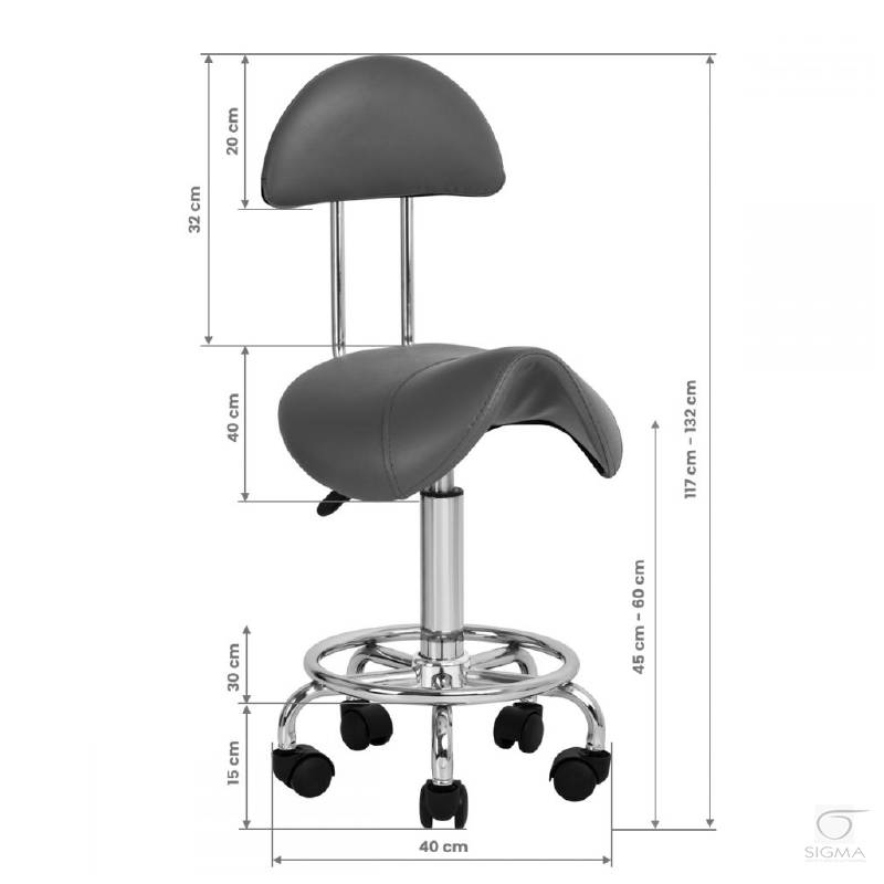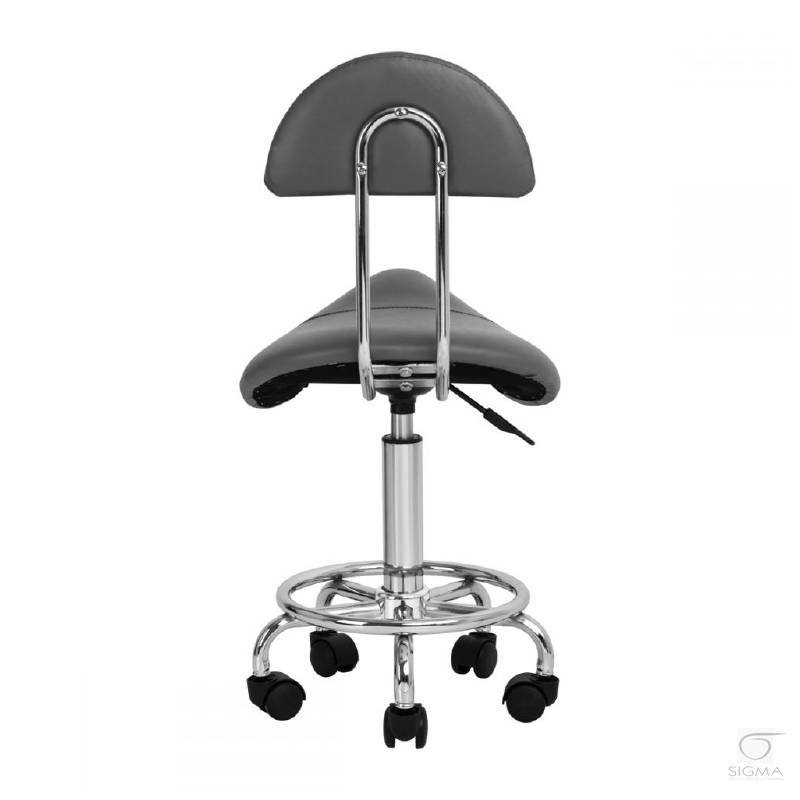 Opis produktu:Wygodny, stabilny taboret kosmetyczny z oparciem, z profilowanym siedziskiem, na pięcioramiennej podstawie z plastikowymi kółkami. Dostępny w kolorze SZARYM, niezbędny mebel w gabinecie kosmetycznym.