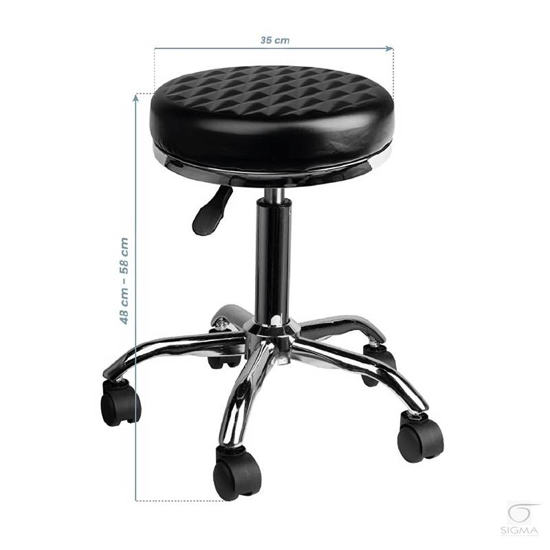 Opis produktu:Wygodny, stabilny taboret niezbędny w salonie kosmetycznym jak i fryzjerskim. Siedzisko wykonane jest z poliuteranu a całość osadzona jest na pięcioramiennej podstawie z plastikowymi kółkami, w kolorze czarnym.
