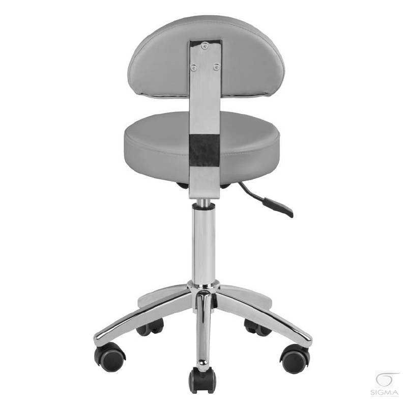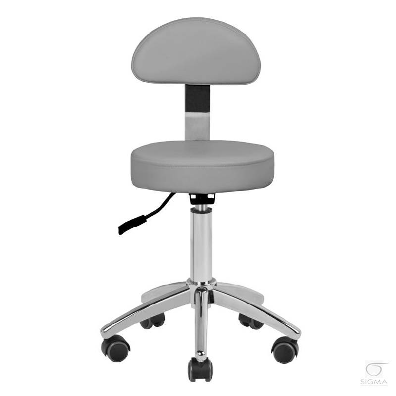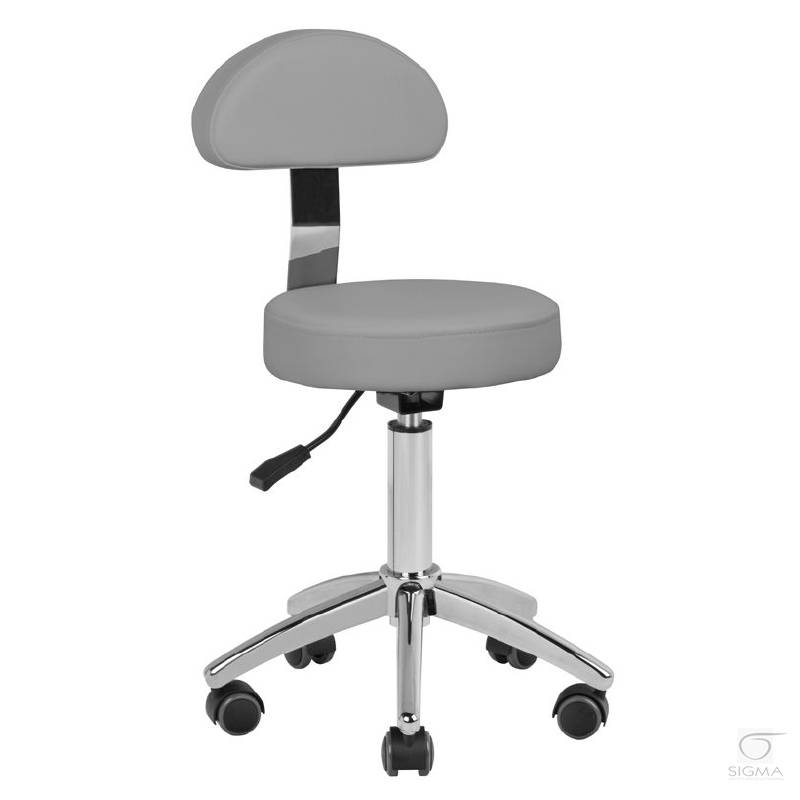 szary. Wygodny taboret kosmetyczny, stabilny na pięcioramiennej podstawie, z