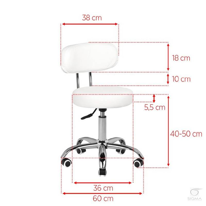 Opis produktu:Wygodny taboret kosmetyczny ze skóry ekologicznej, idealny przy pedicure. Stabilna konstrukcja osadzona na pięcioramiennej podstawie, z gumowanymi kółkami, dostępny w kolorze białym. Wysokość sterowana hydraulicznie.