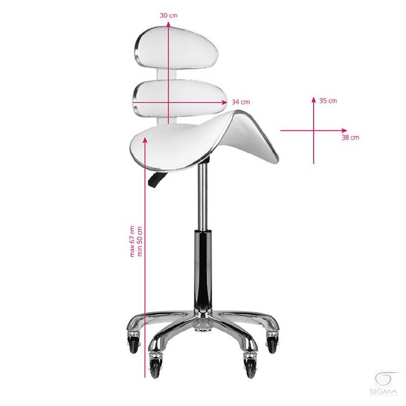kosmetyczny z profilowanym siedziskiem i ergonomicznym oparciem. Osadzony na